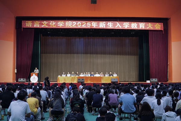 9 月 29 日晚上,语言文化学院2025级新生入学教育大会在综合馆举行,出席此次活动的嘉宾分别是语言文化学院名誉院长宋秋敏、党总支书记、副院长高政、副院长王宁、副书记关飞、全体辅导员、专任教师代表,以及2025 级全体新生。大会由学院党总支书记、副书记高政主持。