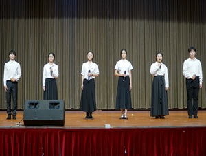 会中,朗诵社成员以饱满情感、铿锵语调演绎朗诵,歌颂语言魅力,展现专业热爱,获阵阵掌声;音乐爱好者协会成员演唱歌曲,旋律轻快、歌词充满活力,传递 “珍惜青春、携手成长” 愿景,引发新生共鸣;屠向明老师带领团队呈现茶艺表演,身着传统服饰展示冲泡、品鉴与礼仪,茶香中尽显中华传统文化雅致,让新生感受 “以茶为媒、以礼相待” 的跨文化内涵。表演丰富了氛围,彰显学院文化底蕴与活力,增进新生交流。