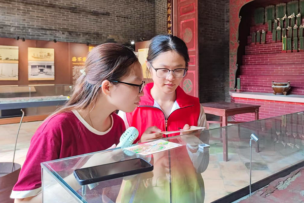 国庆当天,南社明清古村落不仅迎来大量游客,景区还特别推出古村打卡活动——为每位入园游客免费发放一张印有南社古村落标志性建筑图案的明信片,游客只需在将军别院、玫瑰小院、资政第、家庙、葫芦空间、谢氏大宗祠、南社人家、南贵坊、茶示部落这九处指定景点完成打卡盖章,即可到景区服务中心兑换一份蕴含古村落文化元素的精美小礼品。这一活动的开展,让志愿者的服务内容更加丰富,在原有引导与讲解工作基础上,增添了 “景点打卡盖章” 的服务环节。
